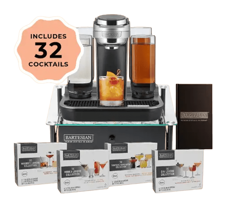 The Game Day Pro Bundle. The perfect cocktail for every game day – at the touch of a button. The Game Day Pro Bundle features the Professional Cocktail Maker, Storage Drawer, 2026 Cocktail Menu, and a curated selection of cocktails featuring whiskey, vodka, tequila, and gin for your big Sunday watch party. The Bartesian cocktail maker crafts bar-quality cocktails on demand with: Over 60 bar-quality cocktail varieties, Under 30-second, freshly-mixed process, 4 drink strength settings.
