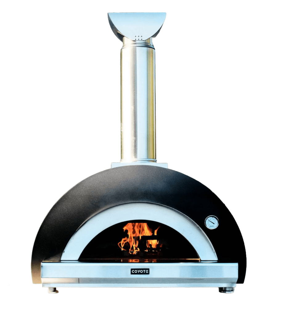 The Coyote Wood-Fired Pizza Oven brings the authentic taste of wood-fired cooking to your outdoor space, available in both Gas and Wood models. Featuring a 31K BTU single burner (gas version) and a ceramic stone burner cover, it delivers even heat distribution for perfectly cooked pizzas with crispy crusts and flavorful toppings. Built with a one-piece seamless dome for durability and superior heat retention, the oven also features an Active Heat Management System to maintain consistent temperatures up to 1,000° F, ensuring top-tier performance. The ThermoShift Chimney System optimizes airflow, while the front smoke escape design keeps the cooking process clean and efficient. The 4-piece toolkit included makes setup easy. For added flexibility, a cart option is available, making it easy to move and position the oven anywhere in your outdoor space.